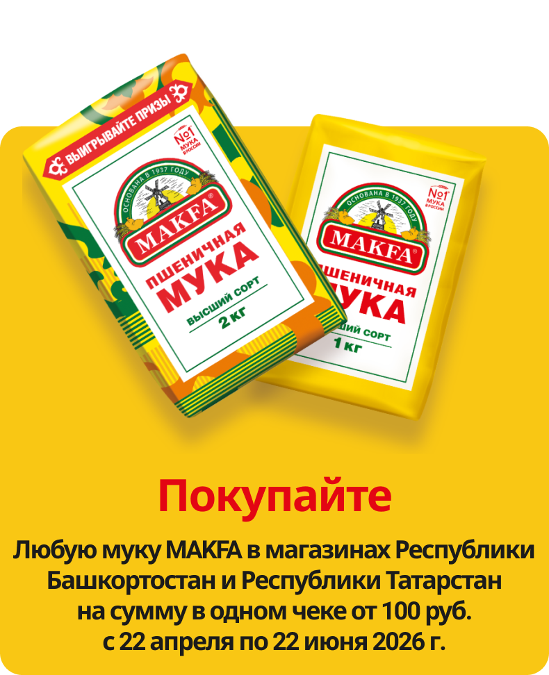 В акции участвуют любая мука и мучные смеси MAKFA – как в акционном, так и в обычном дизайне.