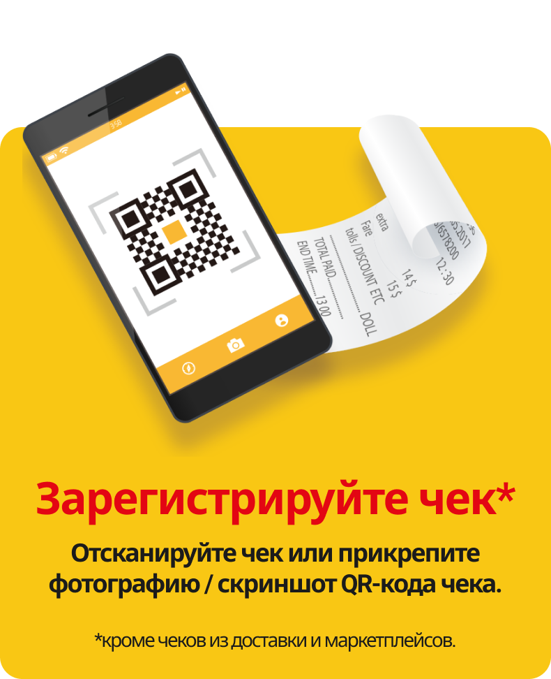Чеки из доставки и маркетплейсов (Ozon, Wildberries, Яндекс Маркет, Мегамаркет, Магнит маркет и др.) в данной акции не участвуют.